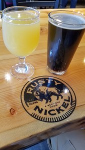 The staff at the Rusty Nickel Brewing Company are fantastic and very friendly! We appreciate how they took the time to chat and explain more about their business to us. We were given a spot to sit inside and JT got to work trying a few craft beers he hadn’t had before. (I know…hard to believe… she said dripping with sarcasm.)