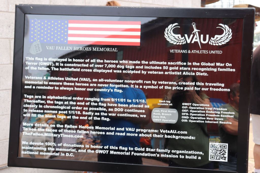 This weekend, we were able to visit the traveling wall dedicated to those military men and women who lost their lives since the 2001 attack. There are 7000 dog tags on the flag and one of the men guarding the wall (A 30 year veteran) said 60 WNY families were affected. It was humbling and heartbreaking to see families visiting and taking photos of their loved ones’ tags.